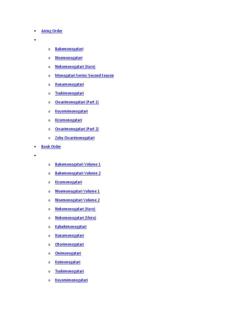 Monogatari Series Order