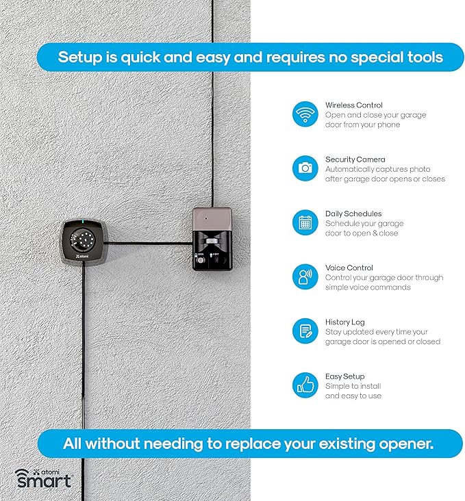 Atomi Smart Garage Door Opener Built In Camera Wifi Compatible With Alexa Google Assistant Ios Android And The Atomi Smart App Wireless Control Real Time Notifications And Alerts Amazon Ca Tools Home Improvement