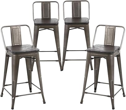 Dhp luxor metal counter stool with wood seat and backrest set of two 24 antique copper. This urban counter stool is a classic statement piece making it a perfect dining and conversation seat. The dhp luxor metal counter stool offers a bistro style aesthetic to any space. The luxor 24 metal counter stool with a wood seating surface from dhp is highly fashioned with a distressed finish and antique metal design. Dhp luxor metal counter stool with wood seat and backrest set of two 30 antique gun metal yongqiang set of 4 metal barstools 24 inch high back bar stools dining bar chairs counter high bar stools with wooden seat matte black.