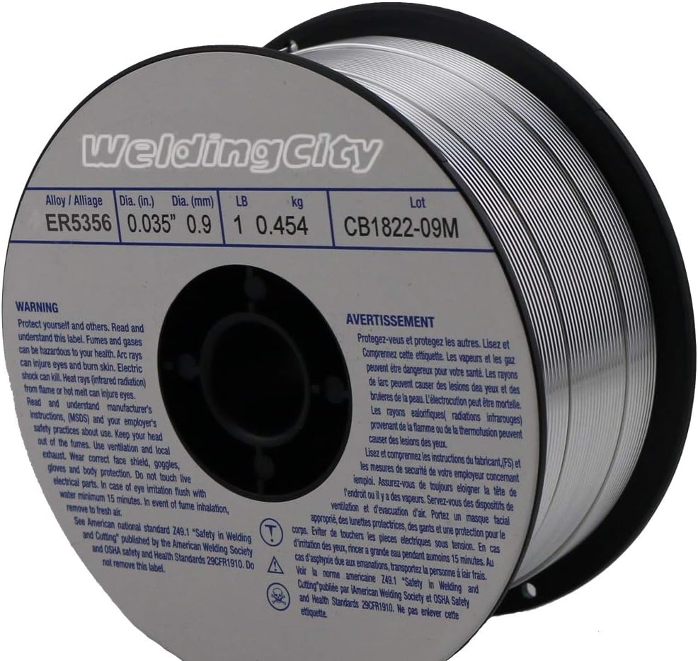 Er5356 welding wire properties. Guide to the choice of filler metal for general purpose welding 356 0 a356 0 6005 6061 319 0 333 0 357 0 a357 0 511 0 512 0 7004 7005 6063 6101. Spool er5356 is a general purpose type aluminum alloy which is typically chosen for its relatively high shear strength. This type is also useful if color match is important after anodizing. Er5356 aluminum welding wire is mainly used where higher weld strength and greater ductility is required and is compatible wth 5050 5052 5083 5154 5356 6061 and 6363 alloys.